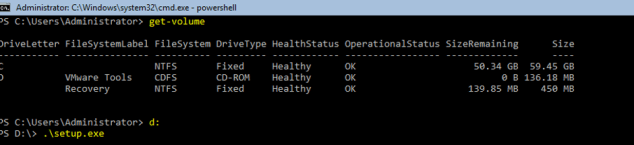 2) Check that the VMware Tools ISO is mounted to the guest OS by running the Powershell command: Get-volume