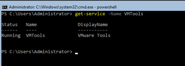 8) Check the VMware tools service is running by typing the following command at the prompt: get-service -Name VMTools