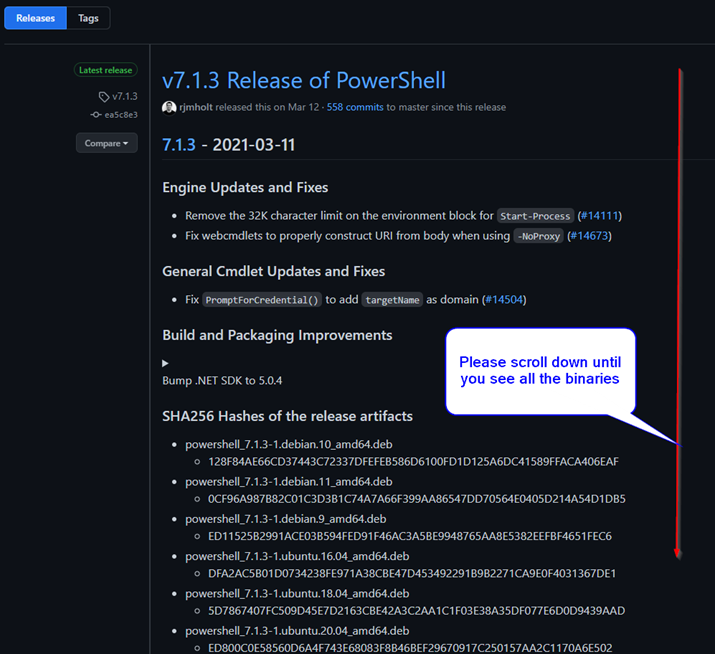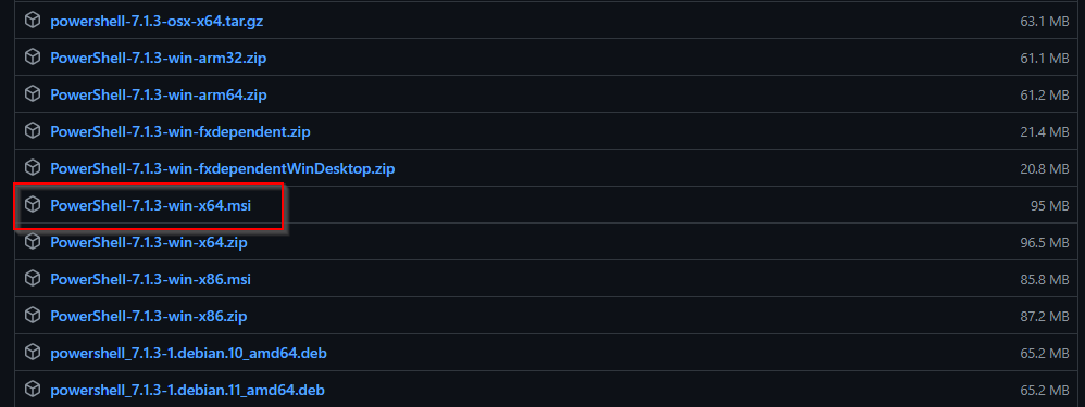 Click on the name of the binaries which correspond most with the platform you will use PowerShell on. (In my case, Windows 10 64-bit)